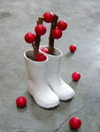 2003Materialen: laarsen, tape, tafeltennisballen, aarde, takken, latex en acrylverf.